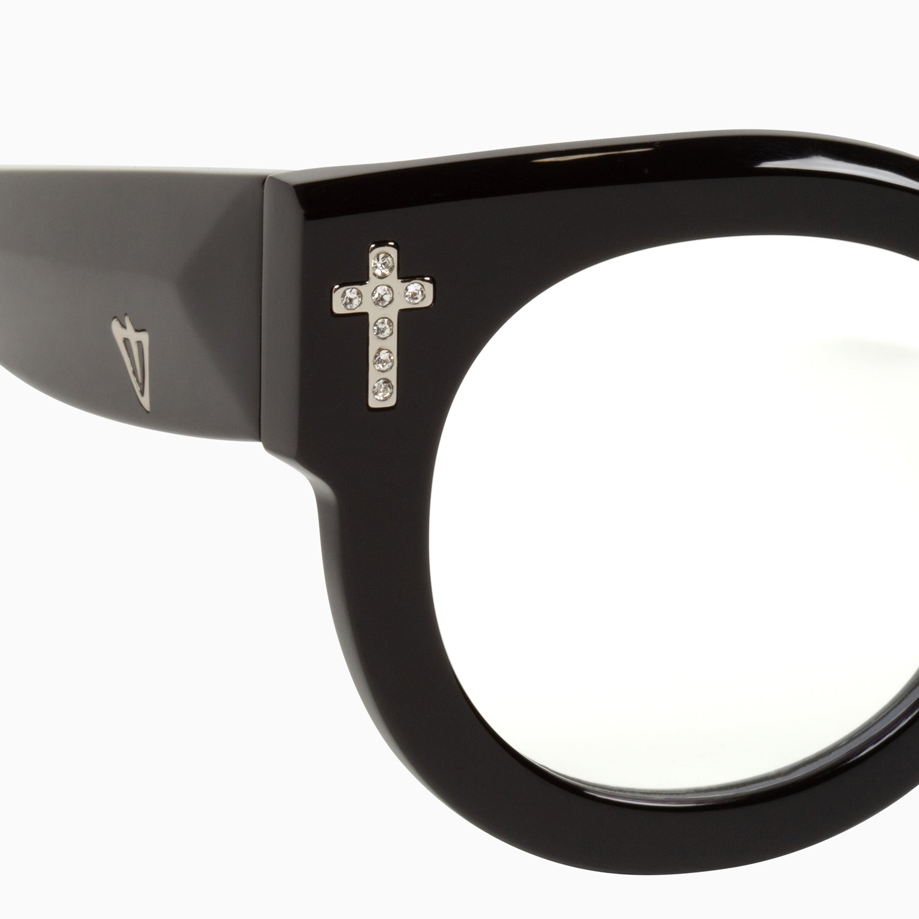 This fashion forward yet versatile style has quickly become one of our iconic shapes and is now available in our zero base (flat) face curve and zero base lenses. Our attention to detail and craftsmanship is heroed through the bevelled arm detail, premium Japanese acetate and metal cross inserts that have been inset with 14 Swarovski Crystals